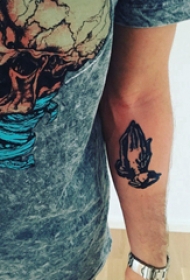祈祷之手纹身图 男生手臂上虔诚的祈祷之手纹身图片