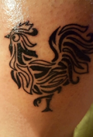 公鸡纹身图案 男生大腿上黑色的公鸡纹身图片