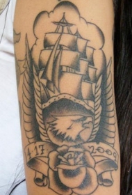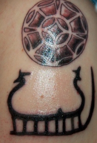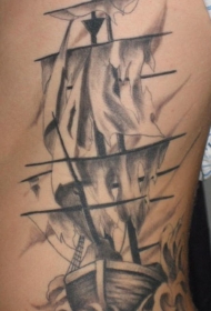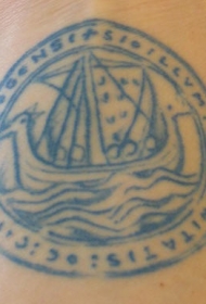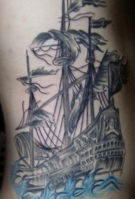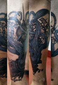 腹部卡通彩绘章鱼攻击帆船纹身图案
