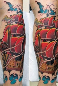 手臂旧学校彩色帆船纹身图案