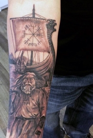 手臂棕色插画风格的维京勇士与帆船纹身