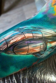 大臂超现实鲜艳色彩飞船纹身图案