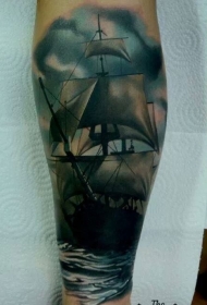 手臂水彩色逼真的帆船纹身图案