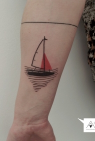 手臂简单的线条小船纹身图案