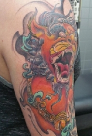 传统瑞兽彩绘抽象线条麒麟纹身图案