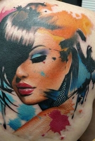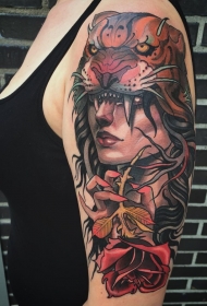 现代传统风格的彩色骷髅与玫瑰纹身图案