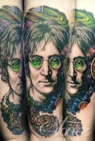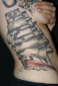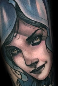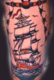 新传统彩色膝盖鲨鱼与箭头纹身图案