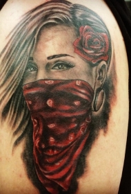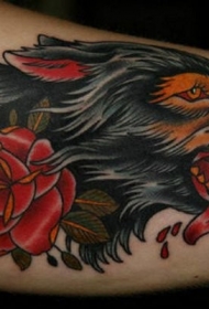 传统的老式狂暴血腥的狼和红色玫瑰纹身图片