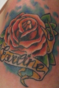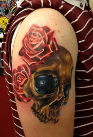 新传统风格彩色金头骨与红玫瑰纹身图案