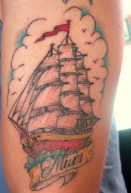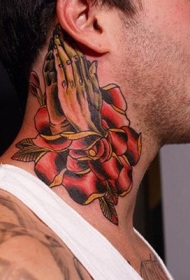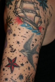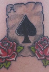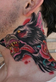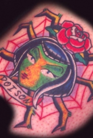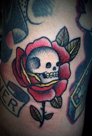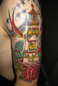 肩部彩色old school红玫瑰和蛾色纹身图案