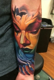 新传统风格的彩色恶魔猫头鹰纹身图片