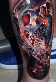 墨西哥传统风格的恶魔骨架和头骨纹身