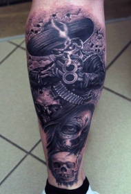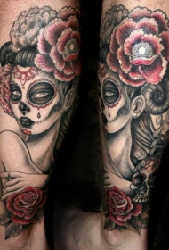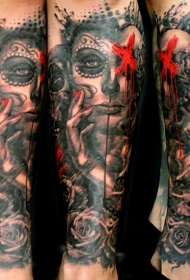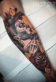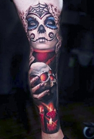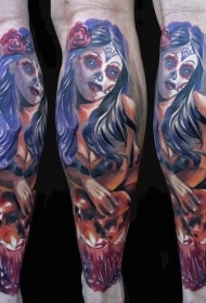 墨西哥传统彩色腿部妇女肖像纹身图片