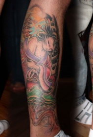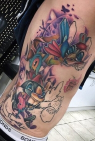腰侧彩色日本传统艺妓与花朵纹身图案