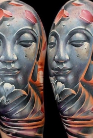 肩部新传统风格的彩色石头如来佛祖雕像纹身