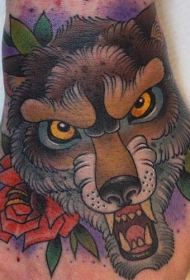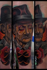 手臂新传统风格的彩色猫头鹰与玫瑰纹身