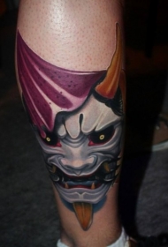 小腿彩色的恐怖风格男孩与箭头面具纹身图案