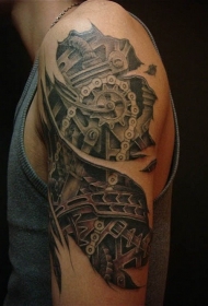 男性胸部壮观的黑白阴阳八卦与鲤鱼纹身图案