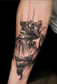小臂现代传统风格彩色神秘熊鹿角纹身图案