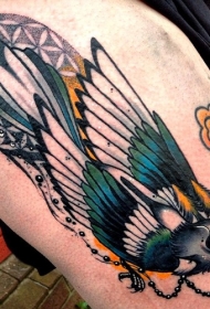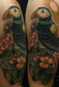 大臂新传统风格彩色的鸟和花朵纹身图案