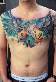 胸部现代传统风格彩色幻想鸟纹身图案