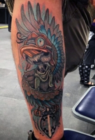 小腿new school彩色印度鸟和翅膀纹身图案