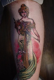 小腿墨西哥传统风格美女肖像纹身图案