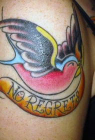 大臂传统的彩色鸟和英文字母纹身图案