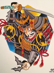 日本武士传统彩绘纹身图案手稿