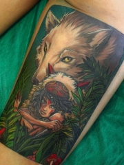 腿部彩色狼纹身图片