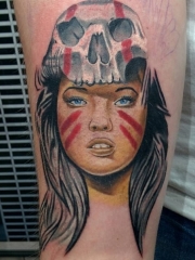 腿部血腥女纹身图案