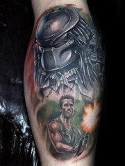 新传统的彩色铁血战士纹身图案