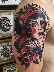强烈的新传统女士纹身图案来自于纹身师洛博内托