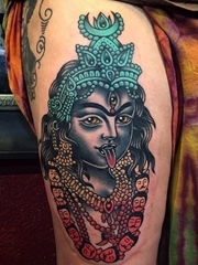 小腿上的传统风格印第安人物肖像纹身图片