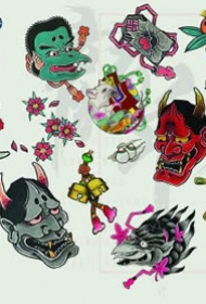 日式传统风格的青蛙等彩色日式纹身图案欣赏