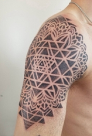 3d几何纹身图案 男生大臂上黑色的几何梵花纹身图片