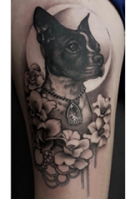 双大臂纹身 男生大臂上花朵和小狗纹身图片