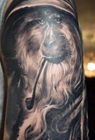双大臂纹身 男生大臂上黑色的猴子纹身图片