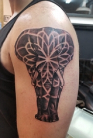 双大臂纹身 男生大臂上黑色的大象纹身图片