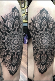 双大臂纹身 男生大臂上黑色的几何花朵纹身图片