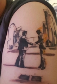 双大臂纹身 男生大臂上海龟和建筑物纹身图片