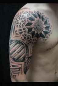 双大臂纹身 男生大臂上黑色的DNA和几何纹身图片