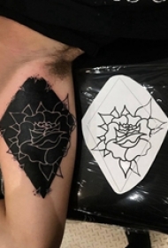 男生大臂上黑色几何简单抽象线条植物花朵纹身图片