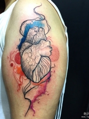 大臂线条心脏泼墨彩色纹身图案