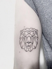 大臂线条点刺几何狮子纹身图案