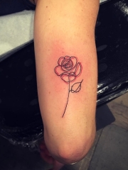 大臂小清新线条玫瑰纹身图案