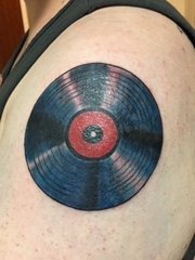 手大臂上个性的大唱片纹身图片