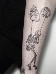 大臂骷髅心脏人脑点刺欧美纹身图案