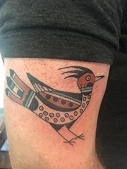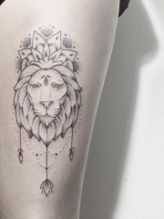 右手大臂膀上的漂亮鲨鱼头饰女子纹身