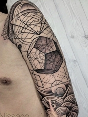 男性右手大臂精致的几何图形纹身图片